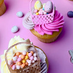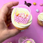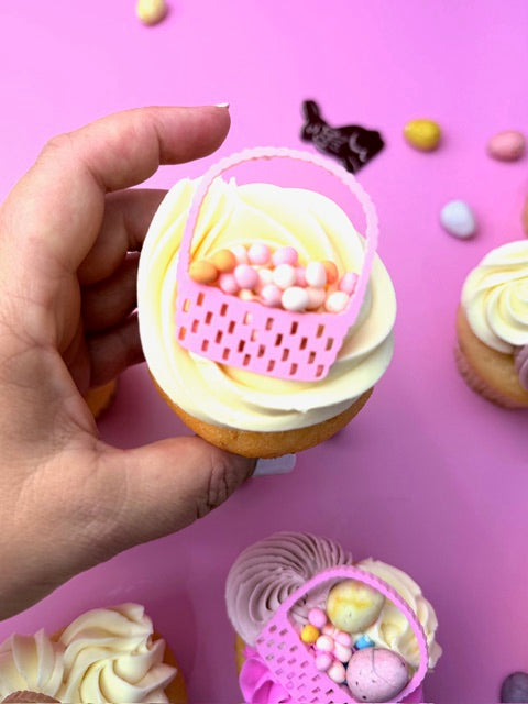Bring Easter magic to your desserts with these charming mini basket toppers. Crafted from shimmering acrylic, each topper captures the festive spirit of the season with delicate detail and sparkle. Available in soft musk pink or elegant beige pearl, they complement any cake or cupcake design beautifully. Measuring 4cm wide by 4.5cm tall, these toppers are perfectly sized for cupcakes or nestled into buttercream on larger cakes. The prongless design makes placement effortless, letting you focus on creating stunning Easter treats. A lovely finishing touch for spring celebrations.